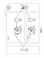 FIG. 8 shows a block diagram illustrating the interaction of multiple location-aware infrastructure devices and mobile devices in an exemplary location-aware transaction processing system according to an embodiment of the invention.FIG. 8 illustrates the collection of location data and transaction data at amerchant804 using a plurality of location terminals (816aand816b), aPOS terminal806, and alocation proxy818. Each location terminal (816aand816b) may have a specific coverage area within a merchant location, as depicted by the elliptical shaped regions surrounding each location terminal (816aand816b). Mobile devices located within the elliptical shaped regions may be accessed by the corresponding location terminal. For example,mobile device1802ais within the range of (or in proximity to)location terminal816a, whilemobile device2802bis within the range of (or in proximity to)location terminal816b.