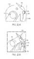 FIGS. 24A and 24B illustrate partial cross-sectional end views of variations for actuating the needle assembly.