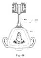 In certain regions, such as the lip and nasal bridge regions, the gap in the supporting structure means that headgear tension is not directly transmitted by compressing the sealing structure to these regions of the face. In these regions, the sealing structure is preferably supported at its ends, and extends somewhat like a rubber band, or hammock stretched across the respective lip and nasal bridge regions. SeeFIG. 131.
