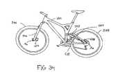 FIG. 34 is a side elevational view of bicycle employing yet another embodiment of an acceleration-sensitive shock absorber.