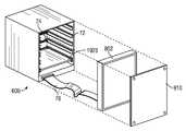 According to various embodiments, other suitable holding mechanisms may be alternatively used. For example, rather than sliding themodular boards1925 into and out ofrails72, the user may simply place them into a different holding mechanism, such as a number of shelves, or, alternatively, one continuous shelf. Other holding mechanisms include pegs, slots, etc. As shown inFIGS. 6-7, rails72 may be disposed on the vertical interior surfaces ofmodular thermostat600. However, in some embodiments rails72 may be disposed on the inner vertical surfaces ofmodular thermostat600 or the inner surfaces ofmodular thermostat600 which are parallel withwall70. Various numbers ofrails72, distances betweenrails72, and sizes ofrails72 may all be employed withinmodular thermostat600. In one embodiment,modular thermostat600 may contain any number ofrails72 vertically spaced at equal distances apart. However, in other embodiments larger distances betweencertain rails72, or even different rail configurations, withinmodular thermostat600 may exist. By incorporating different rail structures or spacing, various sizes and types ofmodular boards1925 may be inserted intomodular thermostat600. In some embodiments, variations ofrails72 may necessitate corresponding variations in receivingslots74. For example, greater spacing betweenrails72 may require greater spacing between receivingslots74.