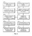 FIG. 1 illustrates the use of two radio-frequency analog corrective signals. However, in some embodiments, only one radio-frequency analog corrective signal may be used. One such embodiment making use of a single radio-frequency corrective signal is illustrated inFIG. 2. Instep200, the adapter receives an outbound radio-frequency signal from a transceiver. Instep202, the adapter shifts the frequency of the outbound radio-frequency signal to a different radio frequency. Instep204, the frequency-shifted outbound radio-frequency signal is combined with a feedback signal described in greater detail below. Instep206, a radio-frequency analog corrective signal is generated from the outbound radio-frequency signal, and instep208, the outbound radio-frequency signal is transmitted, for example by a transmit antenna.