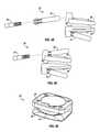 FIGS. 48 and 49 are exploded views illustrating the installation of thepegs32 to theartificial disc30.FIG. 48 shows afirst peg32 already installed intoend plate38. As mentioned above, once theartificial disc30 is inserted between two adjacent vertebrae (FIGS. 2 and 3), the surgeon drills holes into the vertebrae. Next, apeg32 is inserted into thehole37 of theend plate36, and into the hold drilled in the bone (FIG. 49). Next, a lockingscrew34 is screwed into a threaded hole in the peg32 (seFIG. 47), locking the peg in place.