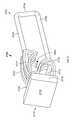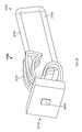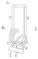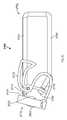 FIGS. 28A-28F depict a sequence of movements of thelabel holder2712 as aproduct2804ais removed from thedisplay management system2700. As such, thelabel holder2712 may be configured to pivot between a closed position, as depicted inFIG. 28A, and an open position, as depicted inFIG. 28C. In one example, thearm structure2722 may be configured to prevent more than one product (e.g. more than one of products2804a-c) hanging from thelower rail2706 from being removed from thedisplay management system2700 each time thelabel holder2712 is pivoted from the closed position depicted inFIG. 28A to the open position depicted inFIG. 28C. Taking each step in turn,FIG. 28A depicts thelabel holder2712 in a closed position,FIG. 28B depicts thelabel holder2712 is a partially-pivoted position withproduct2804awithinchannel2806 of thearm structure2722. Accordingly, the geometry of thearm structure2722 is such that only one of the products, from products2804a-2804c, will fit into thechannel2806.FIG. 28C depicts thelabel holder2712 in a fully-pivoted position.FIG. 28D depicts thelabel holder2712 in the fully-pivoted position after theproduct2804ais removed from thelower rail2706. Further,FIG. 28E depicts thelabel holder2712 in the partially-pivoted position as it is returned to the closed position, as depicted inFIG. 28E.