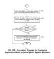 After the application media has been presented or displayed to an SMS member via the member's social media system profile page, account, or the like, a member may interact with the application media. In one embodiment, such interaction includes providing information about the member, such as contact information, opinions, preferences, or the like. In another embodiment, such interaction includes clicking various application media features, playing an application media game, and various other types of interactions. If a member interacts with application media (step3217), then information about that interaction is received at the respective SMS and is transmitted back to theSRM101 for storage, analysis, and reporting to the marketer106 (step3219). As described in greater detail elsewhere herein, this application media interaction information (such as member contact information, member opinions, etc.) can be used by marketers to update or improve their marketing programs, products, and the like. If a SMS member does not interact with the application media (e.g., ignores it), then process3200 ends.