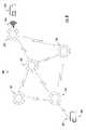 Also, as shown inFIG. 9, prior art narrow beam FSO nodal systems only allow point to point communications between the nodes. Other points, and moving users, are not able to receive or transmit communications. This is illustrated to be points “X” not being on a line of communication. The broad beams of example implementations cover all the areas in the mesh network, so that all points “X” are on communications beams, as shown inFIG. 10. Thus even moving users can be in continuous communication. Also, in comparison to omnidirectional radio frequency systems as shown inFIG. 11, example implementations of the present disclosure enable far higher bandwidths and frequency reuse. In addition to achieving linkage to any users in the entire mesh area, example implementations allow for high redundancy of coverage. As shown inFIG. 10, each user “X” can communicate with each of the six nodes, thereby increasing link reliability and bandwidth. In addition, multiple lasers and detectors on each panel can be incorporated so that each panel and each beam will continue to function even with multiple device failures. Lower cost lower reliability components can thus be used.