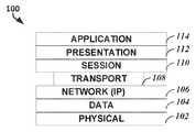 FIG. 1 illustrates, by way of example, a logical block diagram of an embodiment ofHON layers100.FIG. 2 illustrates, by way of example a logical block diagram of an embodiment ofICN layers200. The typical open systems interconnect (OSI) model of the HON inFIG. 1 is broken into seven layers. The seven layers include a physical layer102 (layer one), data link layer104 (layer two), network layer106 (layer three), transport layer108 (layer four), session layer110 (layer five), presentation layer112 (layer six), and application layer114 (layer seven).