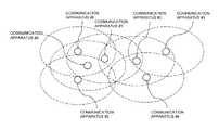 In this case, thecommunication apparatus #1 receives a beacon (N2) from thecommunication apparatus #2 located in the vicinity. Thecommunication apparatus #2 receives a beacon (N1) from thecommunication apparatus #1 in the vicinity and a beacon (N3) from thecommunication apparatus #3. Thecommunication apparatus #3 also receives the beacon (N2) from thecommunication apparatus #2 in the vicinity.