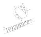 In another exemplary embodiment (second embodiment) of the present disclosure shown inFIG. 2, thefiller10 for removing wrinkles may have, for example, a circular transection (Also, it may have a hexagonal transection.). The thin and long tubularmain body12 may be formed by spirally winding a plurality of strip-shaped parts12a,12bwhich is made of the material of themain body12 of thefiller10 for removing wrinkles and which is having a predetermined width b along the surface of along core material20 having a diameter desired for thehollow portion12cso as to cross each other (in a manner similar to making a bamboo wife from bamboo cane). Then, thecore material20 may be removed, such that thehollow portion12cis formed in theparts12a,12bin a lengthwise direction, and the through-holes14 may be formed by the gaps between theparts12a,12b(including the gaps formed at the crossing of the parts). Alternatively, the thin and long tubularmain body12 may be formed by various methods which are spirally winding the plurality ofparts12a,12bso as to cross each other, without using the core material. AlthoughFIG. 2 shows an example wherein twoparts12a,12b, i.e. afirst part12aand asecond part12b, are used to form thefiller10 for removing wrinkles according to the present disclosure, it will be obvious to those skilled in the art that the thin and long tubularmain body12 may be formed by spirally winding a plurality of strip-shaped parts as to cross each other, without being limited thereto.