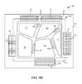 In some applications, aWLP BAW device100 may include multiple surfacemount connection structures102 andmultiple BAW resonators104, as illustrated inFIGS. 7A and 7B.FIG. 7A shows a3D view of theWLP BAW device100 with aWLP enclosure106, andFIG. 7B shows a top view of theWLP BAW device100 under acap108 of theWLP enclosure106. For the purpose of this illustration, theWLP BAW device100 includes five surfacemount connection structures102, five BAWresonators104 with acommon piezoelectric layer110, and theWLP enclosure106. In different applications, theWLP BAW device100 may include fewer or more surfacemount connection structures102 and fewer ormore BAW resonators104.