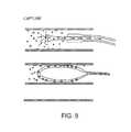 A representative embodiment of a target biomarker detection method and device is set forth inFIG. 9. In this embodiment, a blood sample containing secreted target biomarkers A and B is captured from near the ablation sites using a catheter based capture device (FIG. 9A), as will be described in more detail below. This capture step results in sequestration of the target biomarkers in a capture compartment wherein the biomarkers are concentrated. The target biomarkers bind to one or more immobilized capture agents on the inner surface of the capture compartment (FIG. 9B). Binding of the target biomarkers to the immobilized capture agents results in a signal that is transduced to an ex vivo device via an output generator (FIG. 9C). Examples of devices for carrying out these and other embodiments are described in more detail below with reference toFIGS. 51-56D.