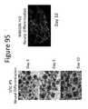 These changes in gene expression observed by qRT-PCR correlated with results observed by phase contrast microscopy and immunstained cryo-sections of clusters. Byday 10 in the mesodermal differentiated suspension culture, about 1 in 10 clusters began to spontaneously “beat” suggesting the cells had differentiated to myo-cardial tissue (FIG. 94, left panel,day 10, white bars). Stained cross sections of some clusters showed a striated, end to end, β-tubulin staining pattern indicative of muscle formation (FIG. 94, right panel).