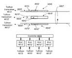 Referring now toFIG. 46C, a diagram is shown illustrating a top view of an example, non-limiting embodiment of a coupling system in accordance with various aspects described herein. In particular, a coupling system is presented that includes ahollow waveguide4610 that is configured to guideelectromagnetic waves4605 conveying data from a transmitter oftransceiver4612. Thedielectric coupler4625 is configured to receive theelectromagnetic waves4605 from thehollow waveguide4610 via aneck portion4622 of thedielectric coupler4625. Thedielectric coupler4625 includes asplitter portion4624 that is configured to split theelectromagnetic waves4605 amongarms4626 along the top of thetransmission medium4600 andarms4626′ along the bottom of the transmission medium—relative to the orientations shown. Each of the plurality ofarms4626 and4626′ ends at differing azimuthal orientations relative to thetransmission medium4600 and is configured to generate, responsive to theelectromagnetic waves4605,electromagnetic waves4607 along a surface of thetransmission medium4600 wherein theelectromagnetic waves4607 propagate along the surface of thetransmission medium4600 without requiring an electrical return path.
