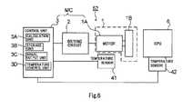In addition, as an embodiment according to a second modification, a configuration as in ablower system52 illustrated inFIG. 6 may be employed. Theblower system52 is provided with atemperature sensor41 that detects the environmental temperature of themotor1A and atemperature sensor42 that detects the temperature of theCPU6, which is a heat source. On the basis of the temperature detected by thetemperature sensor42, thetemperature control unit3D performs variable duty cycle control to control the rotational speed of themotor1A and to perform cooling control on theCPU6. In addition, thecalculation unit3A calculates the elapsed service life ratio by using the temperature detected by thetemperature sensor41 as the temperature Kiin the above Formula (1). The use of the environmental temperature of themotor1A as the temperature Kienables more accurate estimation of the service life.
