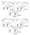FIGS. 1A-1D are pictorial diagrams depicting an example conference call with voice-enabled devices. InFIG. 1A, theexample conference environment100 includes thelocations104A,104B,104C. Thefirst location104A includes afirst user108A, a first voice-enableddevice102A, andadditional devices106A,106B. Thesecond location104B includes asecond user108B, a second voice-enableddevice102B, andadditional devices106C,106D. Thethird location104C includes athird user108C, a third voice-enableddevice102C, and additional device(s)106E. Theadditional devices106A,106B,106C,106D,106E can include, but are not limited to, conference room devices such microphones, speakers, cameras, displays, and/or video equipment. The voice-enabled device(s)102A,102B,102C and theadditional devices106A,106B,106C,106D,106E can be components of and/or communicate with a voice based system. As shown, eachuser108A,108B,108C can make anutterance110A,110B,110C, which can be a wake up and/or a start meeting command. In response to receiving and/or processing eachrespective speech utterance110A,110B,110C, the voice based system can connect each of thelocations104A,104B,104C to a conference call.