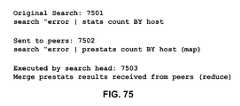 To facilitate faster query processing, a query can be structured as a map-reduce computation, wherein the “map” operations are delegated to the indexers, while the corresponding “reduce” operations are performed locally at the search head. For example,FIG. 75 illustrates how asearch query7501 received from a client at search head7104 can split into two phases, including: (1) a “map phase” comprising subtasks7502 (e.g., data retrieval or simple filtering) that may be performed in parallel and are “mapped” toindexers7102 for execution, and (2) a “reduce phase” comprising amerging operation7503 to be executed by the search head when the results are ultimately collected from the indexers.