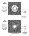FIG. 21H depicts, in a longitudinal view of an insulated conductor, e-field for TM01 electromagnetic waves operating at 40 GHz.FIGS. 21I and 21J, in contrast, depictcross-sectional views2111 and2121, respectively, of the insulated conductor ofFIG. 21H illustrating the field strength of e-fields in the direction of propagation of the electromagnetic waves (i.e., e-fields directed out of the page ofFIGS. 21I and 21J). The electromagnetic waves shown inFIGS. 21I and 21J have a TM01 wave mode at 45 GHz and 40 GHz, respectively.FIG. 21I shows that the intensity of the e-fields in the direction of propagation of the electromagnetic waves is high in a region between the outer surface of the insulation and the outer surface of the water film (i.e., the region of the water film). The high intensity is depicted by a light color (the lighter the color the higher the intensity of the e-fields directed out of the page).FIG. 21I illustrates that there is a high concentration of e-fields polarized longitudinally in the region of the water film, which causes high currents in the water film and consequently high propagation losses. Thus, under certain circumstances, electromagnetic waves at 45 GHz (having a TM01 wave mode) are less suitable to mitigate rain water or other obstructions located on the outer surface of the insulated conductor.