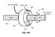 It is submitted that thewaveguide system2200 ofFIGS. 22A-22B can be replaced with other waveguide systems of the subject disclosure capable of generating electromagnetic waves having an HE mode. For example, thewaveguide system1865′ ofFIG. 18W can be configured to generate electromagnetic waves having an HE mode. In an embodiment, two or more MMIC's1870 of thewaveguide system1865′ can be configured to generate electromagnetic waves of opposite phase to generate polarized e-fields such as those present in an HE mode. In another embodiment, different pairs of MMIC's1870 can be selected to generate HE waves that are polarized at different spatial positions (e.g., north and south, west and east, northwest and southeast, northeast and southeast, or other sub-fractional coordinates). Additionally, the waveguide systems ofFIGS. 18N-18W can be configured to launch electromagnetic waves having an HE mode onto thecore1852 of one or more embodiments ofcable1850 suitable for propagating HE mode waves.