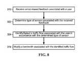 FIG. 8 is a flowchart of a method for adjusting a bandwidth allocation for a traffic flow associated with a user as a function of a type of sensor that provides feedback, in accordance with an embodiment of the invention.