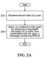 Atstep204, the communication device sends the IRSCU to a network entity that participates in the determination of the adjustment of a bandwidth allocation for a traffic flow associated with the user. The IRSCU includes any appropriate information that is representative of the sensed characteristic of the user. In some implementations, the IRSCU includes at least some of the sensor data. In some implementations, the IRSCU includes processed data that is based on the sensor data. In such implementations, the sensor data is processed prior to transmission. An example of this is described below with reference toFIG. 2B. It will also be understood that sending the IRSCU to the network entity may include sending the IRSCU to a database that is accessed by the network entity when adjustments to bandwidth allocations are made.