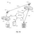 To provide additional examples, mobile computing devices184.1 and184.2 and/or personal electronic devices may be configured to communicate with one another viaradio links183band183cby each communicating withnetwork130 utilizing a cellular communication protocol. As an additional example, mobile computing devices184.1 and/or184.2 may be configured to communicate withexternal computing device186 viaradio links183b,183c, and/or183e. Still further, one or more of mobile computing devices184.1 and/or184.2 and/or personal electronic devices may also be configured to communicate with one or moresmart infrastructure components188 directly (e.g., viaradio link183d) and/or indirectly (e.g., viaradio links183cand183fvia network130) using any suitable communication protocols. Similarly, one or more vehicle controllers181.1 may be configured to communicate directly to the network130 (viaradio link183b) or indirectly through mobile computing device184.1 (viaradio link183b). Vehicle controllers181.1 may also communicate with other vehicle controllers and/or mobile computing devices184.2 directly or indirectly through mobile computing device184.1 vialocal radio links183a. As discussed elsewhere herein,network130 may be implemented as a wireless telephony network (e.g., GSM, CDMA, LTE, etc.), a Wi-Fi network (e.g., via one or more IEEE 802.11 Standards), a WiMAX network, a Bluetooth network, etc. Thus, links183a-183fmay represent wired links, wireless links, or any suitable combination thereof. For example, thelinks183eand/or183fmay include wired links to thenetwork130, in addition to, or instead of, wireless radio connections.