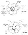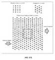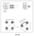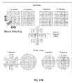 FIG. 47E illustrates the structural differences between a 4×4 linear grid versus a 4×4 hexagonal grid.FIG. 47E further illustrates how a large hexagonal array of dielectric polyrod antennas can be constructed by combining 4×4 hexagonal grids.FIG. 47F illustrates that a 1×7 hexagonal grid can be used to generate near-field beam patterns that can be rotated by 30 degrees by selectively choosing adjacent cells in a horizontal plane.FIG. 47F further shows how 1×7 hexagonal grids can be combined (e.g., a 20 element array), and how with such combinations, various shapes of near-field beam patterns can be generated by selectively activating particular cells of a hexagonal dielectric polyrod array.FIG. 47G further illustrates how a large hexagonal dielectric polyrod array can be used to generate different near-field beam pattern configurations by selective activation and synchronization of cells in the hexagonal dielectric polyrod array, while other cells are inactive for transmission purposes, but may be active for reception of wireless signals.