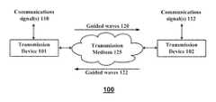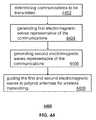 At4404, a first group of transmitters can generate first electromagnetic waves representative of or otherwise associated with the communications and at4406 a second group of transmitters can generate second electromagnetic waves representative of or otherwise associated with the communications. In one embodiment, the first and second electromagnetic waves can propagate and be guided by dielectric cores without requiring an electrical return path, where each of the dielectric cores is connected with one of the transmitters and is also connected with a corresponding antenna of an antenna array to enable beam steering.