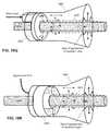 FIGS. 22A and 22B are block diagrams illustrating example, non-limiting embodiments of a waveguide device for launching hybrid waves in accordance with various aspects described herein.