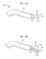 FIGS. 7F and 7G are perspective views of alternative embodiments of blade arrangements described above with reference toFIGS. 7A-7E. In particular,blade arrangement754 ofFIGS. 7F and 7G illustrates different shapes ofblade arrangements764,774,784,794,741,742.Blade arrangement754 is comprises anouter surface755, aninner surface756, a pointeddistal end757, and asharp edge758.
