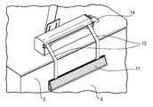 FIG. 8 shows a preferred embodiment of how thestraps12 are affixed to the windingtube16. Thestraps12 have asmall bar23 or such affixed, for example sewn in, to the effect that the thickness of the strap is locally increased. This thicker part is inserted into the windingtube16 through the wider part of one of theopenings18 and then pushed towards the narrower part of the opening. This effectively locks the strap in place to bear the winding forces. The wider part of theopenings18 are then covered to prevent the straps from wandering back out through the wider part of the openings during operation.