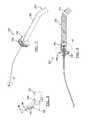 Thefirst actuation member304 includesteeth members344 that operatively engage withgear mechanism334 of thecoupling member328. Thefirst actuation member304 is pivotally attached to a portion ofhandpiece304 such that it is adjacent to thesecond actuation member306. In one exemplary configuration a torsional spring (not shown) is engaged at a pivot point A to biasfirst actuation member304 into a ready position, namely a position whereby theproximal end348 of thefirst actuation member304 is biased upwardly from an outer surface of thehandpiece302. Further, as an alternative arrangement, a coil spring (not shown) may be disposed within the cavity320 to bias thefirst actuation member304. When thefirst actuation member304 is activated against a biasing force created by the spring, the interaction between theteeth members344 and thegear mechanism334 cause thecoupling member328 to move forward. Because theinner cannula308 is fixedly mounted to thecoupling member328, theinner cannula308 is also moved forward.