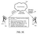 FIG. 35 illustrates an example where a request is sent by John viadevice702 to cloudservices120. Cloud services120 can generate the unique access code which is then encrypted in a message and sent asencrypted e-keys720 to the recipient, Bob, who receives it viadevice704. The request sent by the requester can include an action request. The action can be to send e-keys to Bob. The requester will identify Bob's contact data, such as e-mail, text, notifications, messages, NFC, etc. and can defined privileges for use. The duration that the e-keys will remain active can also be set by the requester. Metadata defining the active state of the e-keys can also be managed by the request, including deactivating codes or self-destructing access code routines when violations occur.