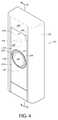 With further reference toFIG. 6, theshell184 includes acentral opening204 in a front surface. Thecentral opening204 is sized and shaped to accommodate theshield192. In the illustrated embodiment, theshield192 is substantially rectangular, and includes acentral opening206 through which thefront button148 protrudes. Theshield192 defines a plane parallel to and in front of afront surface208 of theenclosure180. When theshell184 is mated with theenclosure180, as shown inFIGS. 4 and 10, theshield192 resides within thecentral opening204 of theshell184 such that afront surface210 of theshield192 is substantially flush with afront surface212 of theshell184 and there is little or no gap (FIG. 4) between the outer edges of theshield192 and the inner edges of thecentral opening204 in theshell184.