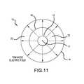 FIG. 11 illustrates a cross-sectional view of the coaxial cable ofFIG. 10 and illustrates a TEM mode electric field relative to the coaxial cable.