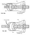 FIGS. 22A and 22B are block diagrams illustrating example, non-limiting embodiments of a waveguide device for launching hybrid waves in accordance with various aspects described herein.