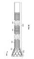 FIG. 12B is an illustration of a plurality ofnodes1215 positioned at the distal end of a wire mesh structure connected to the proximal end of a funnel shapedsleeve1212, in accordance with another embodiment of the present specification. As depicted inFIG. 12B, only everyother node1215 is attached to the sleeve via asuture1218. While still fixedly attaching the wire mesh structure to thesleeve1212, the reduction in the number ofsutures1218, when compared with the embodiment shown inFIG. 12A, creates a device in the compressed pre-deployment configuration having a bulge with a smaller diameter. Such a compressed device will pass more easily through a delivery device or catheter.