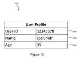FIG. 10 shows an illustrative database table entry for a user profile.