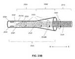 In one embodiment, an inner surface of thewaveguide2622 can be constructed from a metallic material or other materials that reflect electromagnetic waves and thereby enables thewaveguide2622 to be configured to guide the electromagnetic wave towards thecore2628. In one embodiment, thecore2628 can comprise a dielectric core (e.g., as described herein) that extends to, or in proximity of, the inner surface of thewaveguide2622. In another embodiment, the dielectric core can be surrounded by cladding (such as shown inFIG. 18A), whereby the cladding extends to the inner surface of thewaveguide2622. In yet other embodiments, thecore2628 can comprise an insulated conductor, where the insulation extends to the inner surface of thewaveguide2622. In this embodiment, the insulated conductor can be a power line, a coaxial cable, or other types of insulated conductors. In one example, the tapered outer shape may extend to the diameter of the metallic wire. In another example, the tapered outer shape may extend to and include tapering of the metallic wire. In yet another example, the metallic wire may or may not continue beyond thetip2675.