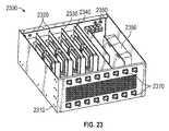 An example of agroup unit2300 is illustrated inFIG. 23. In this embodiment, thegroup unit2300 is contained within a 4U×19″enclosure2310. In the example depicted byFIG. 23,group unit2300 includes twocoherent receivers cards2320, an I/Qsample buffer card2330, asynchronization module card2340, an additionalcomputational resource card2350, apower supply2360, and a plurality ofexternal timing inputs2370.
