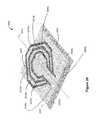 FIG. 17C schematically illustrates a top perspective view ofantenna1704. Theantenna1704 comprises aconnection point1709 for a feed line (not shown) coming through the via1705.FIG. 17D schematically illustrates a side perspective view of theground plane1706. In an embodiment, theground plane1706 comprises a solid metal layer. In other embodiments, theground plane1706 may include structures such as stripes, meshes, and lattices and may not be completely solid. Theground plane1706 may also comprise asocket1709 for the via1705 to pass through. Around thesocket1709, theground plane1706 may also include aninsulating region1710 to insulate thesocket1709 from the rest of theground plane1706. In some embodiments, the ground plane may have an electrical connection to a line coming through the via, and theinsulating region1710 may not be required.