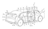 One or more of theside panels10amay be configured to form doors6 of the vehicle. The doors6 may be movably coupled, e.g. pivotally and/or slidably coupled, to the other of theside panels10aor the otherbody frame components10 adjacent to the door6. The door6 may be moved relative to the adjacent body frame component, in order to open and close the door6.