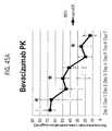 FIGS. 44A-44E are series of graphs plotting tumor volume in nude mice bearing human A375 melanoma xenografts, in which tumors were allowed to grow to a size of 1000 mm3before initiation of therapy. Mice received bevacizumab (BEV,FIG. 44A), nab-paclitaxel (ABX,FIG. 44B), bevacizumab followed by nab-paclitaxel (BEV+ABX,FIG. 44C), AB160 (FIG. 44D) or saline (PBS,FIG. 44E). The absolute dose of nab-paclitaxel and bevacizumab was identical in all treatment cohorts. Each group included at least 5 mice.