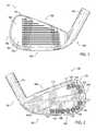 The secondinterior cavity2580 may be in or proximate to thehosel transition portion2495 and extend at any dimension between thetoe portion2440 and theheel portion2450. In one example, as shown inFIGS. 27-29, the secondinterior cavity2580 may extend from the firstinterior cavity2570 at or proximate to thefront portion2460 into thehosel transition portion2495. In another example (not shown), the secondinterior cavity2580 may extend from the firstinterior cavity2570 into thehosel transition portion2495 and to a location near thehosel portion2455. In another example (not shown), the secondinterior cavity2580 may extend from the firstinterior cavity2570 into thehosel transition portion2495 and up to and/or including thehosel portion2455. Accordingly, the secondinterior cavity2580 may extend through all or a substantial portion of thehosel transition portion2495 and/or extend through thehosel portion2455. The apparatus, methods, and articles of manufacture described herein are not limited in this regard.