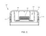 FIG. 3 is a top view of themainframe202 without thecartridge204 installed therein, i.e., looking down into thereceptacle208. Themainframe202 may include a mainframe (or second)electrical connector354 configured for removable coupling with the first electrical connector250 (FIG. 2B). The firstelectrical connector250 is coupled to the secondelectrical connector354 when thecartridge204 is in the installed position (FIG. 2A), and is decoupled or uncoupled from the secondelectrical connector354 when thecartridge204 is in the uninstalled position (FIG. 2B). The secondelectrical connector354 may be positioned at or proximate to thereceptacle208. Generally, the firstelectrical connector250 and the secondelectrical connector354 may have any configuration suitable for providing an electrical interconnection when coupled together, as described above in conjunction withFIG. 1.