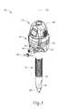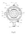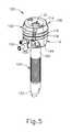Latch ring (110) is arranged distally of housing cap plate (108) and is housed radially inwardly of a sidewall of housing cap plate (108) at an upper proximal end of latch ring (110), and radially inwardly of distal housing (112) at a lower distal end of latch ring (110). As shown inFIG. 6, latch ring (110) includes a user engagement feature in the form of an outwardly projecting knob (186). Latch ring (110) further includes a plurality of inwardly projecting latching features in the form of a pair of latching arms (188) and a pair of cam ramps (190) spaced circumferentially between latching arms (188).