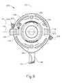 Example 4The surgical access device of any one or more of the preceding Examples, wherein the housing assembly includes a proximal housing and a latch ring configured to releasably couple the proximal housing with the cannula, wherein the latch ring includes a user engagement feature that is actuatable to release the proximal housing from the cannula, wherein the user engagement feature is circumferentially offset from the insufflation port throughout a full range of permissible motion of the user engagement feature.