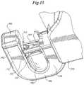 FIG. 14 is a phantom view of the applicator apparatus of an embodiment of the present invention having an automated fastener delivery and storage mechanism.