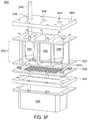 FIG. 3A is a model of tangential flow filtration used in the TFF device presented herein.FIG. 3B depicts a top view of a lower member of one embodiment of an exemplary TFF device.FIG. 3C depicts a top view of upper and lower members and a membrane of an exemplary TFF device.FIG. 3D depicts a bottom view of upper and lower members and a membrane of an exemplary TFF device.FIGS. 3E-3I depict various views of an embodiment of a TFF module comprising a TFF device and having fluidically coupled reservoirs for retentate, filtrate, and exchange buffer.