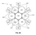 While theantennas4670 are shown and described as single patch antennas, eachantenna4670 can be implemented as an antenna array or other multi-mode launchers to simultaneously launch differing ones of a plurality of guided wave modes. In this embodiment, thewaveguide systems1602 can employ mode-division multiplexing to communicate multiple communication signals within each interstitial area—each via its own mode or subset of available modes. Consider the case where three differing modes are used for each of the six interstitial areas. MIMO/mode division multiplexed signaling can be employed to communicate via eighteen differing communication paths.