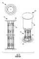 FIG. 2 is a collage that includes a schematic front view, a top view and a perspective view of a prior art multi-columnsmall cell antenna50. As shown inFIG. 2, theantenna50 includes eightlinear arrays52 of vertically-disposed omnidirectional dipoles (the individual dipoles are not visible inFIG. 2). Eachlinear array52 had itsown radome54 to provide environmental protection, and the eightradomes54 are arranged to define a cylinder. Theantenna50 is a dual-band antenna, with four of thelinear arrays52 configured to operate at 1.9 GHz and the other fourlinear arrays52 configured to operate at 2.6 GHz. The diameter of theantenna50 is about six feet, which allowed eachlinear array52 to be highly decorrelated with respect to the otherlinear arrays52 operating in the same frequency band. However, given the large spacing between thelinear arrays52, theantenna50 was not operable as a beam-forming antenna. Theantenna50 used spatial diversity to improve performance.